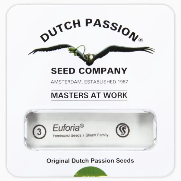 Euforia — это особый сорт, который появился в результате программы по разведению Skunk компании Dutch Passion в 1996 году. Это классический вид Skunk, завоевавший кубок каннабиса, этот сорт десятилетиями был бестселлером в коллекции семян Dutch Passion. Он стал всемирно известным благодаря своему мощному и эйфорическому эффекту. Его мощные смолистые шишки содержат до 20% ТГК. Euforia дает большой урожай и легко выращивается как в помещении, так и на открытом воздухе. В помещении готова к сбору урожая через 8–10 недель цветения. Растения высотой 1–1,5 м, со свежим запахом и насыщенным вкусом сканка. Euforia отличается особым антитревожным и эйфорическим эффектом, отлично подходит для снятия боли. Снимающий стресс эффект Euforia сделает вас расслабленным, безмятежным и счастливым.